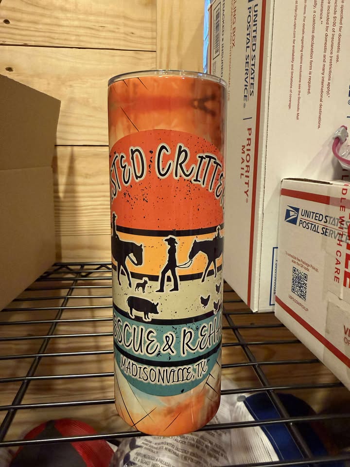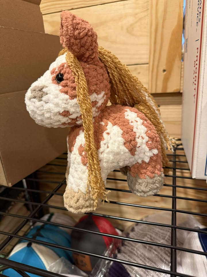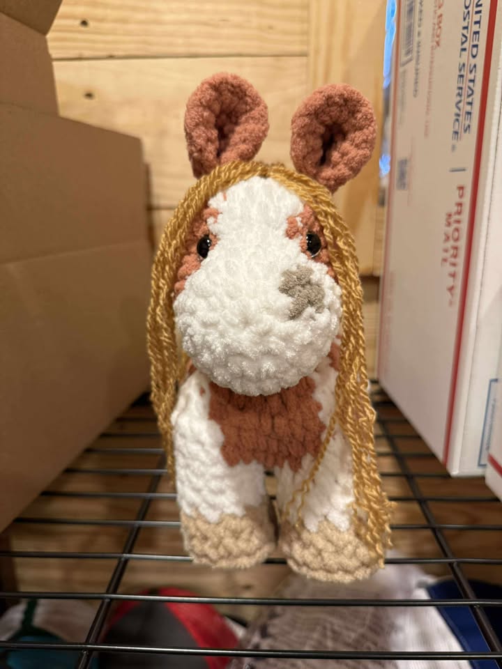 This box contains a large handmade stuffy, horse hair keychain, 2 color pages, a adoption certificate, a twisted critterz tumbler, and a mystery item